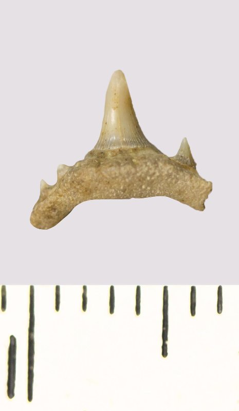 Зуб. Акула. Synechodus sp. Классификация: Хордовые Chordata, Позвоночные Vertebrata, Хрящевые рыбы Chondrichthyes, Пластиножаберные Elasmobranchii