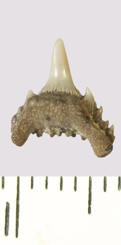 Зуб. Акула. Synechodus sp. Классификация: Хордовые Chordata, Позвоночные Vertebrata, Хрящевые рыбы Chondrichthyes, Пластиножаберные Elasmobranchii