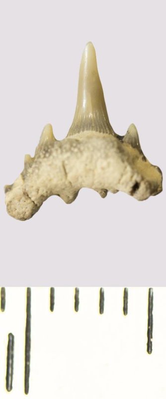 Зуб. Акула. Synechodus sp. Классификация: Хордовые Chordata, Позвоночные Vertebrata, Хрящевые рыбы Chondrichthyes, Пластиножаберные Elasmobranchii