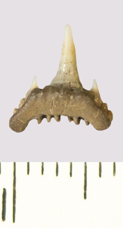 Зуб. Акула. Synechodus sp. Классификация: Хордовые Chordata, Позвоночные Vertebrata, Хрящевые рыбы Chondrichthyes, Пластиножаберные Elasmobranchii