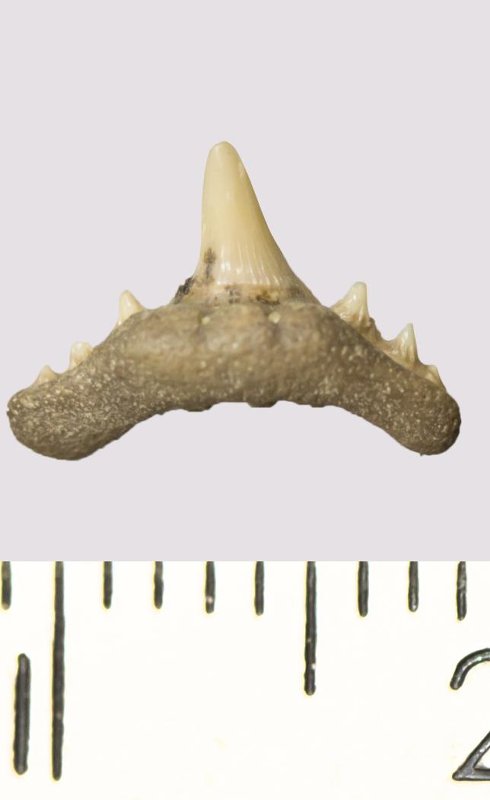 Зуб. Акула. Synechodus sp. Классификация: Хордовые Chordata, Позвоночные Vertebrata, Хрящевые рыбы Chondrichthyes, Пластиножаберные Elasmobranchii