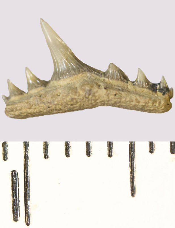 Зуб. Акула. Synechodus sp. Классификация: Хордовые Chordata, Позвоночные Vertebrata, Хрящевые рыбы Chondrichthyes, Пластиножаберные Elasmobranchii