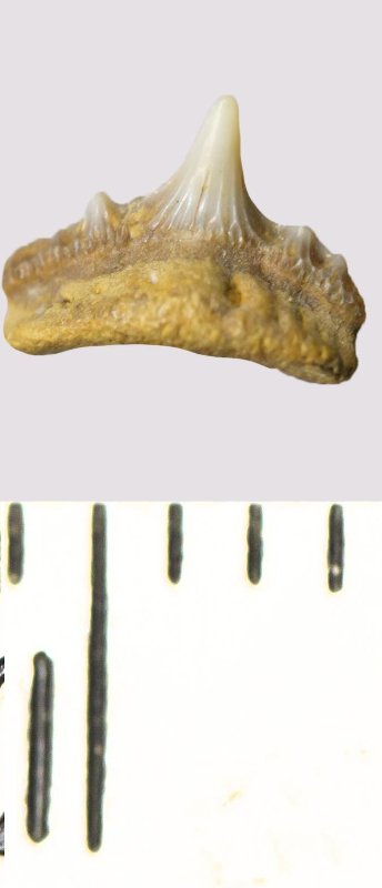 Зуб. Акула. Synechodus sp. Классификация: Хордовые Chordata, Позвоночные Vertebrata, Хрящевые рыбы Chondrichthyes, Пластиножаберные Elasmobranchii