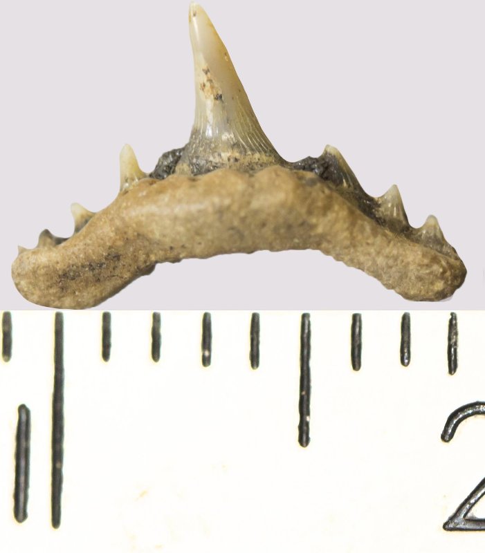 Зуб. Акула. Synechodus sp. Классификация: Хордовые Chordata, Позвоночные Vertebrata, Хрящевые рыбы Chondrichthyes, Пластиножаберные Elasmobranchii