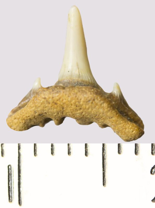 Зуб. Акула. Synechodus sp. Классификация: Хордовые Chordata, Позвоночные Vertebrata, Хрящевые рыбы Chondrichthyes, Пластиножаберные Elasmobranchii