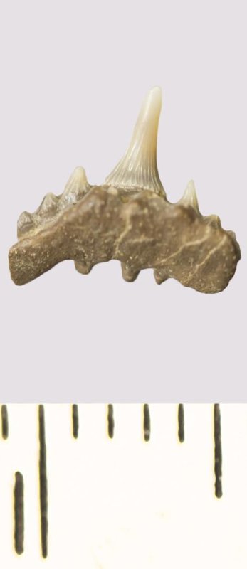 Зуб. Акула. Synechodus sp. Классификация: Хордовые Chordata, Позвоночные Vertebrata, Хрящевые рыбы Chondrichthyes, Пластиножаберные Elasmobranchii