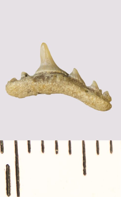 Зуб. Акула. Synechodus sp. Классификация: Хордовые Chordata, Позвоночные Vertebrata, Хрящевые рыбы Chondrichthyes, Пластиножаберные Elasmobranchii
