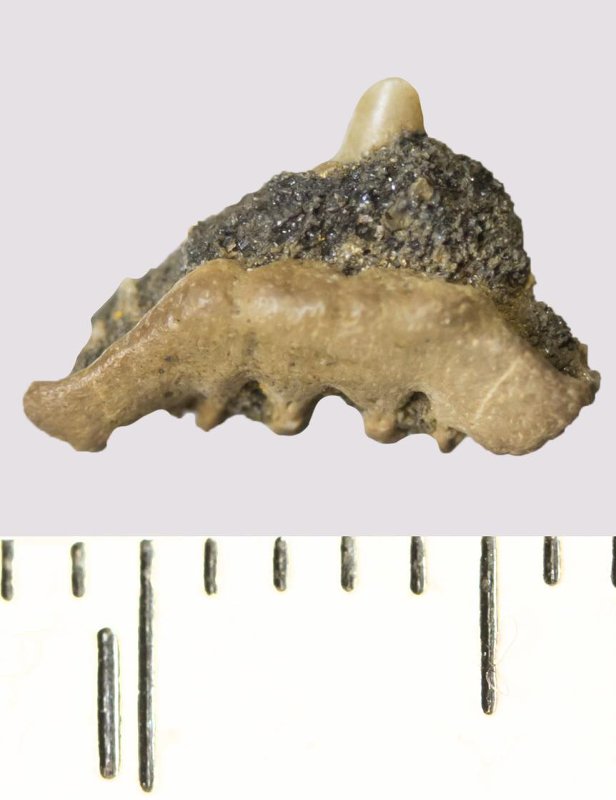 Зуб. Акула. Synechodus sp. Классификация: Хордовые Chordata, Позвоночные Vertebrata, Хрящевые рыбы Chondrichthyes, Пластиножаберные Elasmobranchii