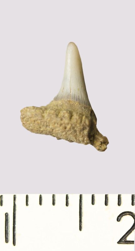Зуб (фрагмент). Акула. Paraorthacodus sp. Классификация: Хордовые Chordata, Позвоночные Vertebrata, Хрящевые рыбы Chondrichthyes, Пластиножаберные Elasmobranchii
