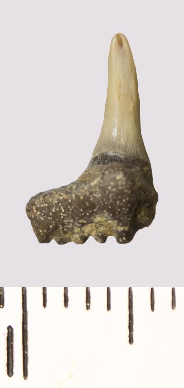 Зуб (фрагмент). Акула. Paraorthacodus sp. Классификация: Хордовые Chordata, Позвоночные Vertebrata, Хрящевые рыбы Chondrichthyes, Пластиножаберные Elasmobranchii