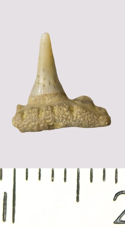 Зуб. Акула. Paraorthacodus sp. Классификация: Хордовые Chordata, Позвоночные Vertebrata, Хрящевые рыбы Chondrichthyes, Пластиножаберные Elasmobranchii