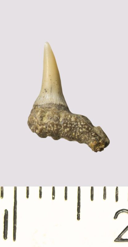 Зуб. Акула. Paraorthacodus sp. Классификация: Хордовые Chordata, Позвоночные Vertebrata, Хрящевые рыбы Chondrichthyes, Пластиножаберные Elasmobranchii