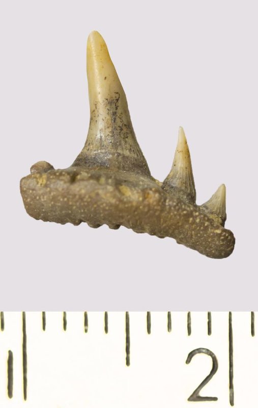 Зуб. Акула. Paraorthacodus sp. Классификация: Хордовые Chordata, Позвоночные Vertebrata, Хрящевые рыбы Chondrichthyes, Пластиножаберные Elasmobranchii