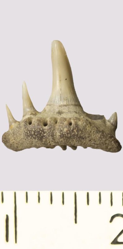Зуб. Акула. Paraorthacodus sp. Классификация: Хордовые Chordata, Позвоночные Vertebrata, Хрящевые рыбы Chondrichthyes, Пластиножаберные Elasmobranchii