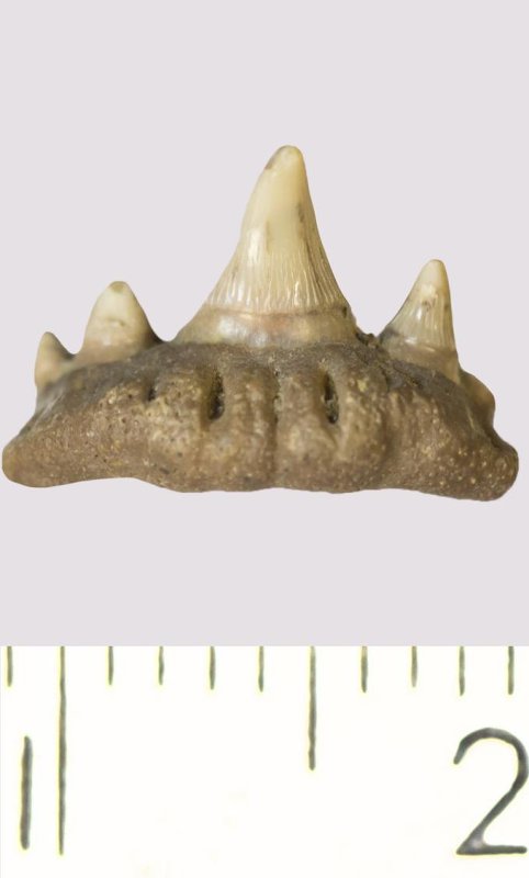 Зуб. Акула. Paraorthacodus sp. Классификация: Хордовые Chordata, Позвоночные Vertebrata, Хрящевые рыбы Chondrichthyes, Пластиножаберные Elasmobranchii