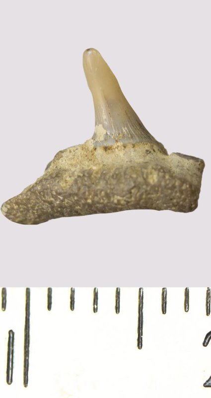 Зуб. Акула. Paraorthacodus sp. Классификация: Хордовые Chordata, Позвоночные Vertebrata, Хрящевые рыбы Chondrichthyes, Пластиножаберные Elasmobranchii