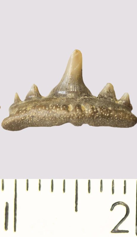 Зуб. Акула. Paraorthacodus sp. Классификация: Хордовые Chordata, Позвоночные Vertebrata, Хрящевые рыбы Chondrichthyes, Пластиножаберные Elasmobranchii