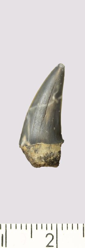 Зуб (фрагмент). Акула. Scapanorhynchus gigas Woodward, 1889. Классификация: Хордовые Chordata, Позвоночные Vertebrata, Хрящевые рыбы Chondrichthyes, Пластиножаберные Elasmobranchii