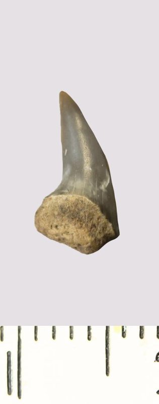 Зуб (фрагмент). Акула. Lamniformes gen. et sp. indet. Классификация: Хордовые Chordata, Позвоночные Vertebrata, Хрящевые рыбы Chondrichthyes, Пластиножаберные Elasmobranchii