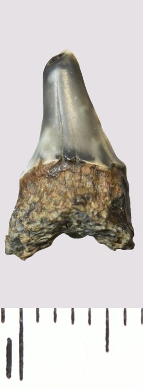Зуб. Акула. Odontaspis macrorhiza (Cope) Leriche, 1902. Классификация: Хордовые Chordata, Позвоночные Vertebrata, Хрящевые рыбы Chondrichthyes, Пластиножаберные Elasmobranchii