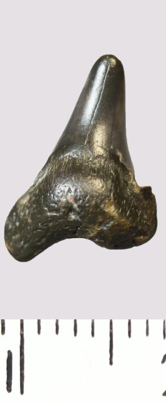 Зуб. Акула. Odontaspis macrorhiza (Cope) Leriche, 1902. Классификация: Хордовые Chordata, Позвоночные Vertebrata, Хрящевые рыбы Chondrichthyes, Пластиножаберные Elasmobranchii