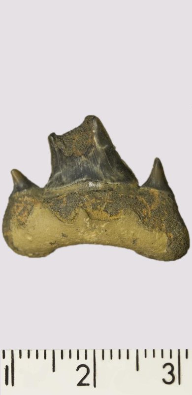 Зуб. Акула. Rhaphiodus sp. Классификация: Хордовые Chordata, Позвоночные Vertebrata, Хрящевые рыбы Chondrichthyes, Пластиножаберные Elasmobranchii