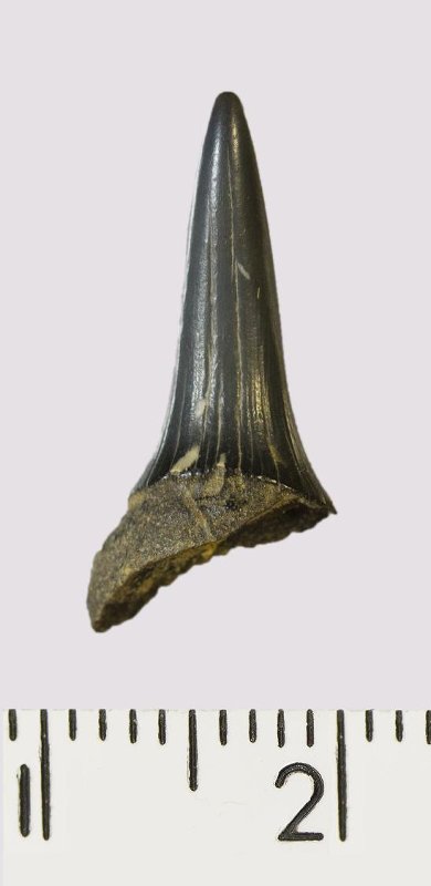 Зуб (фрагмент). Акула. Rhaphiodus sp. Классификация: Хордовые Chordata, Позвоночные Vertebrata, Хрящевые рыбы Chondrichthyes, Пластиножаберные Elasmobranchii