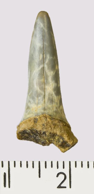Зуб (фрагмент). Акула. Rhaphiodus sp. Классификация: Хордовые Chordata, Позвоночные Vertebrata, Хрящевые рыбы Chondrichthyes, Пластиножаберные Elasmobranchii