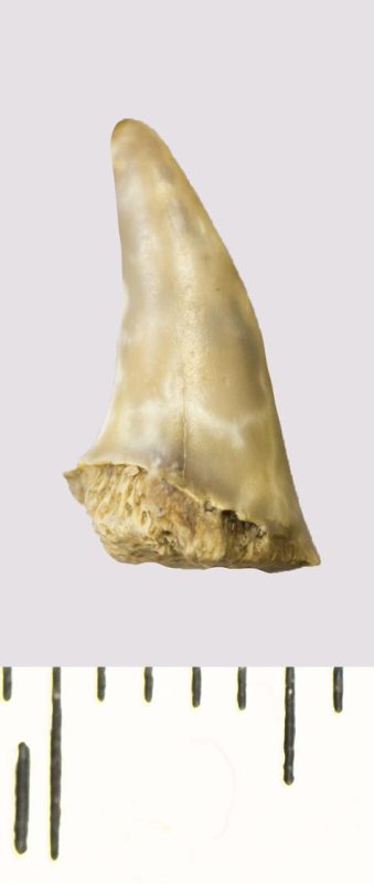 Зуб (фрагмент). Акула. Lamniformes gen. et sp. indet. Классификация: Хордовые Chordata, Позвоночные Vertebrata, Хрящевые рыбы Chondrichthyes, Пластиножаберные Elasmobranchii