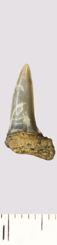 Зуб. Акула. Scapanorhynchus gigas Woodward, 1889. Классификация: Хордовые Chordata, Позвоночные Vertebrata, Хрящевые рыбы Chondrichthyes, Пластиножаберные Elasmobranchii