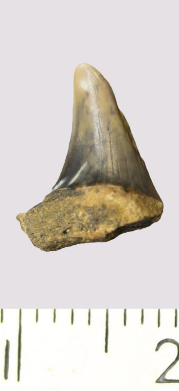 Зуб (фрагмент). Акула. Lamniformes gen. et sp. indet. Классификация: Хордовые Chordata, Позвоночные Vertebrata, Хрящевые рыбы Chondrichthyes, Пластиножаберные Elasmobranchii