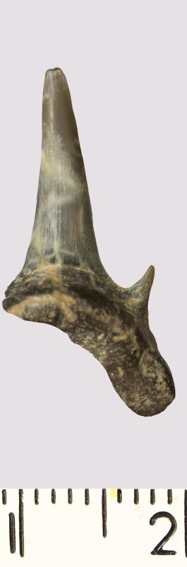 Зуб. Акула. Rhaphiodus sp. Классификация: Хордовые Chordata, Позвоночные Vertebrata, Хрящевые рыбы Chondrichthyes, Пластиножаберные Elasmobranchii