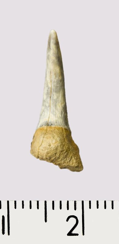 Зуб (фрагмент). Акула. Rhaphiodus sp. Классификация: Хордовые Chordata, Позвоночные Vertebrata, Хрящевые рыбы Chondrichthyes, Пластиножаберные Elasmobranchii
