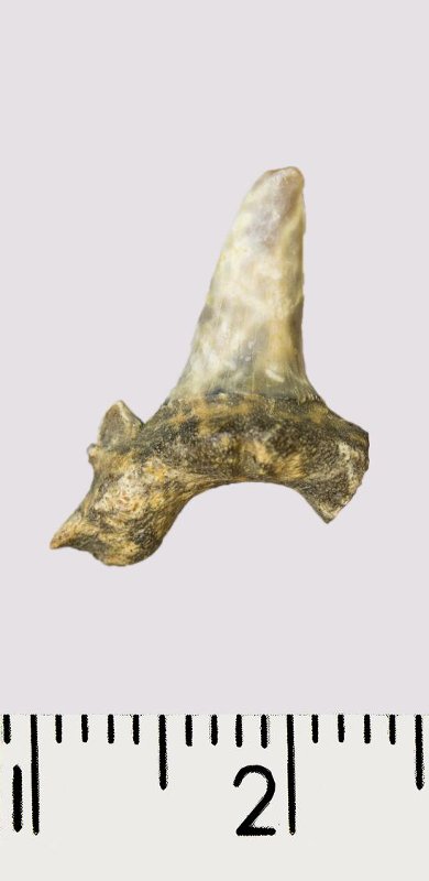 Зуб. Акула. Rhaphiodus sp. Классификация: Хордовые Chordata, Позвоночные Vertebrata, Хрящевые рыбы Chondrichthyes, Пластиножаберные Elasmobranchii