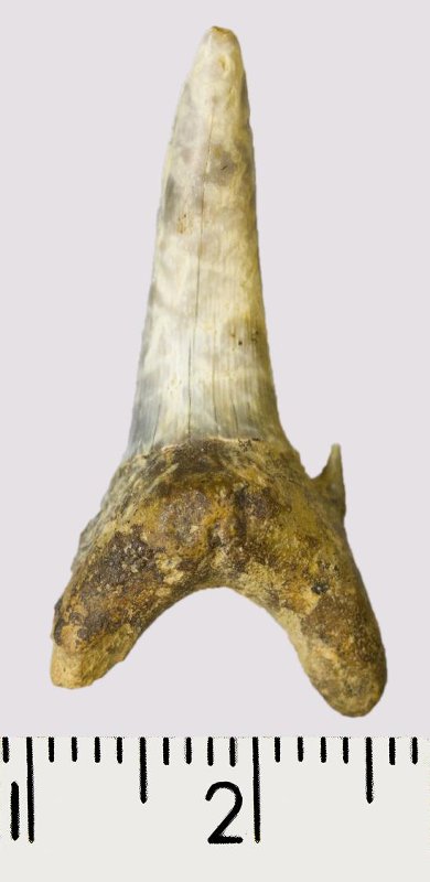 Зуб. Акула. Rhaphiodus sp. Классификация: Хордовые Chordata, Позвоночные Vertebrata, Хрящевые рыбы Chondrichthyes, Пластиножаберные Elasmobranchii