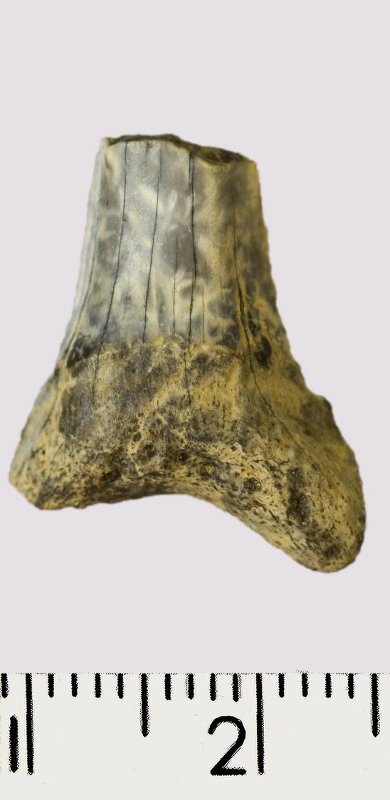 Зуб. Акула. Scapanorhynchus gigas Woodward, 1889. Классификация: Хордовые Chordata, Позвоночные Vertebrata, Хрящевые рыбы Chondrichthyes, Пластиножаберные Elasmobranchii