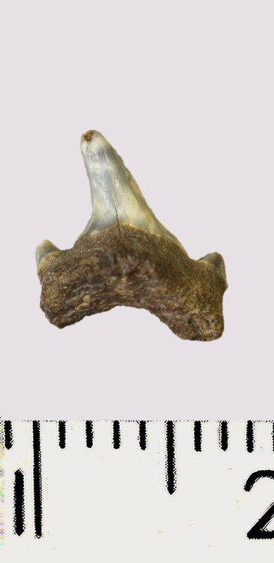 Зуб. Акула. Odontaspis macrorhiza (Cope) Leriche, 1902. Классификация: Хордовые Chordata, Позвоночные Vertebrata, Хрящевые рыбы Chondrichthyes, Пластиножаберные Elasmobranchii
