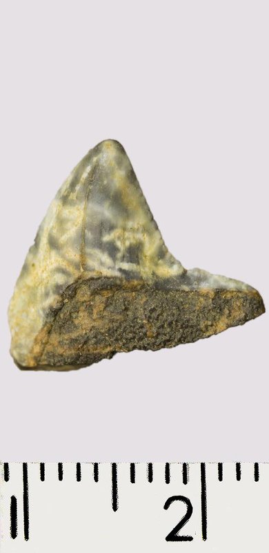 Зуб (фрагмент). Акула. Anacorax sp. Классификация: Хордовые Chordata, Позвоночные Vertebrata, Хрящевые рыбы Chondrichthyes, Пластиножаберные Elasmobranchii