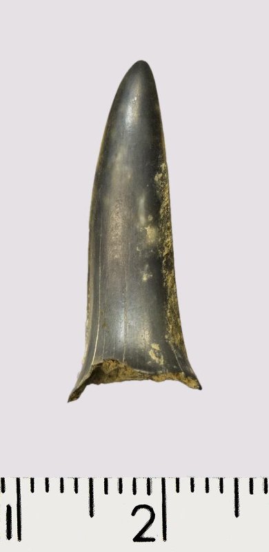 Зуб (фрагмент). Акула. Scapanorhynchus gigas Woodward, 1889. Классификация: Хордовые Chordata, Позвоночные Vertebrata, Хрящевые рыбы Chondrichthyes, Пластиножаберные Elasmobranchii