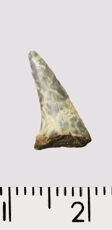 Зуб (фрагмент). Акула. Lamniformes gen. et sp. indet. Классификация: Хордовые Chordata, Позвоночные Vertebrata, Хрящевые рыбы Chondrichthyes, Пластиножаберные Elasmobranchii