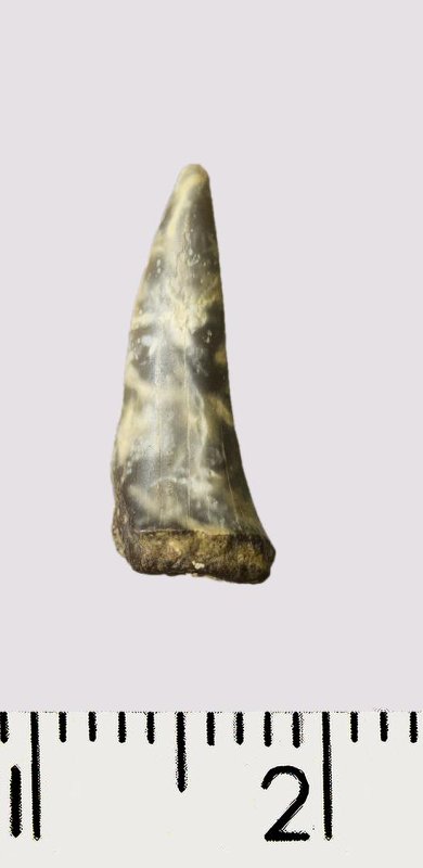 Зуб (фрагмент). Акула. Lamniformes gen. et sp. indet. Классификация: Хордовые Chordata, Позвоночные Vertebrata, Хрящевые рыбы Chondrichthyes, Пластиножаберные Elasmobranchii