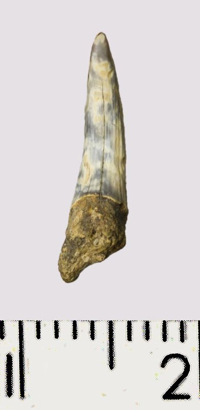 Зуб. Акула. Scapanorhynchus rhaphiodon Agassiz, 1843. Классификация: Хордовые Chordata, Позвоночные Vertebrata, Хрящевые рыбы Chondrichthyes, Пластиножаберные Elasmobranchii