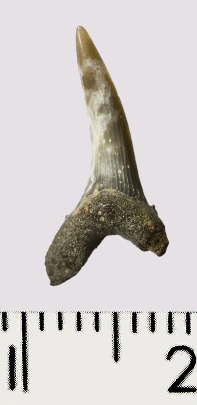 Зуб. Акула. Scapanorhynchus rhaphiodon Agassiz, 1843. Классификация: Хордовые Chordata, Позвоночные Vertebrata, Хрящевые рыбы Chondrichthyes, Пластиножаберные Elasmobranchii