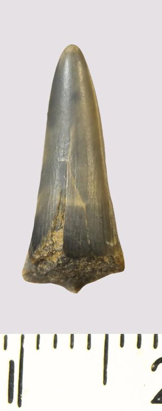 Зуб (фрагмент). Акула. Rhaphiodus sp. Классификация: Хордовые Chordata, Позвоночные Vertebrata, Хрящевые рыбы Chondrichthyes, Пластиножаберные Elasmobranchii