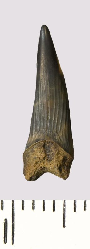 Зуб (фрагмент). Акула. Rhaphiodus sp. Классификация: Хордовые Chordata, Позвоночные Vertebrata, Хрящевые рыбы Chondrichthyes, Пластиножаберные Elasmobranchii
