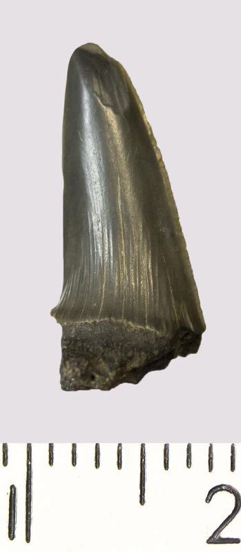 Зуб (фрагмент). Акула. Rhaphiodus sp. Классификация: Хордовые Chordata, Позвоночные Vertebrata, Хрящевые рыбы Chondrichthyes, Пластиножаберные Elasmobranchii