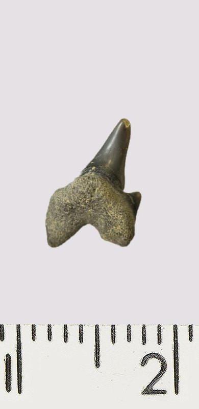 Зуб. Акула. Odontaspis macrorhiza (Cope) Leriche, 1902. Классификация: Хордовые Chordata, Позвоночные Vertebrata, Хрящевые рыбы Chondrichthyes, Пластиножаберные Elasmobranchii