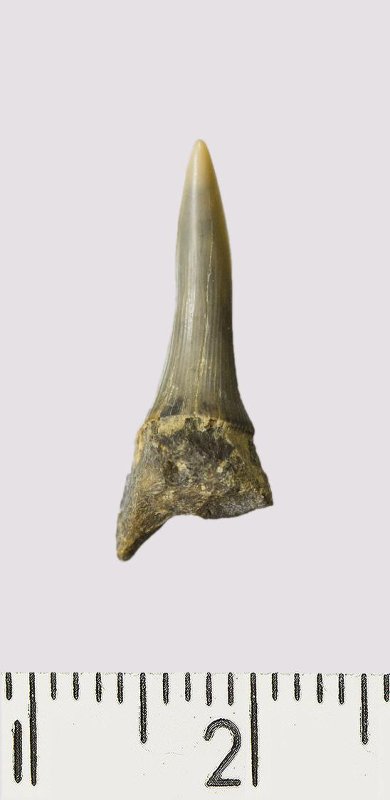 Зуб (фрагмент). Акула. Rhaphiodus sp. Классификация: Хордовые Chordata, Позвоночные Vertebrata, Хрящевые рыбы Chondrichthyes, Пластиножаберные Elasmobranchii