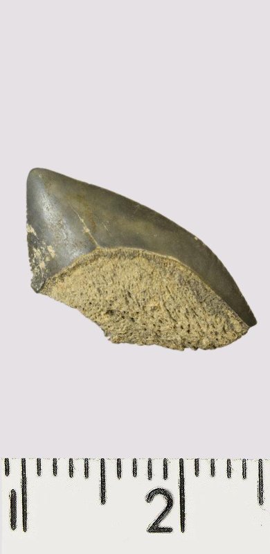 Зуб (фрагмент). Акула. Anacorax kaupi (Agassiz, 1843). Классификация: Хордовые Chordata, Позвоночные Vertebrata, Хрящевые рыбы Chondrichthyes, Пластиножаберные Elasmobranchii