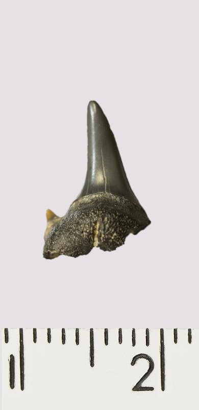 Зуб (фрагмент). Акула. Lamniformes gen. et sp. indet. Классификация: Хордовые Chordata, Позвоночные Vertebrata, Хрящевые рыбы Chondrichthyes, Пластиножаберные Elasmobranchii